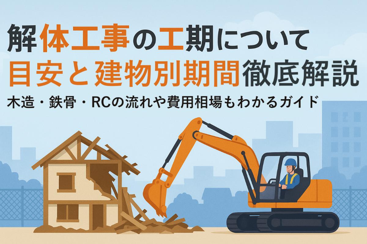 「解体工事の工期はどれくらいかかるのか?」――解体工事の期間は建物の種類や規模、施工場所の地域性によって大きく異なることをご存知でしょうか。たとえば木造住宅の場合、30坪程度の家屋なら一般的に【7日~10日】ほど、鉄骨造や鉄筋コンクリート造など耐久性の高い構造物であれば、【2週間~1カ月以上】かかるケースも多くなります。