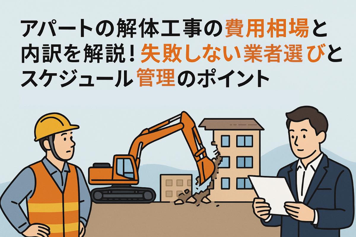「アパートの解体工事って、どれくらい費用がかかるのだろう?」と疑問に感じている方も多いのではないでしょうか。実際、アパートの解体費用は木造と鉄骨造やRC造で大きな差が出るほか、アスベストや残置物の撤去が必要となった際には追加費用が発生します。